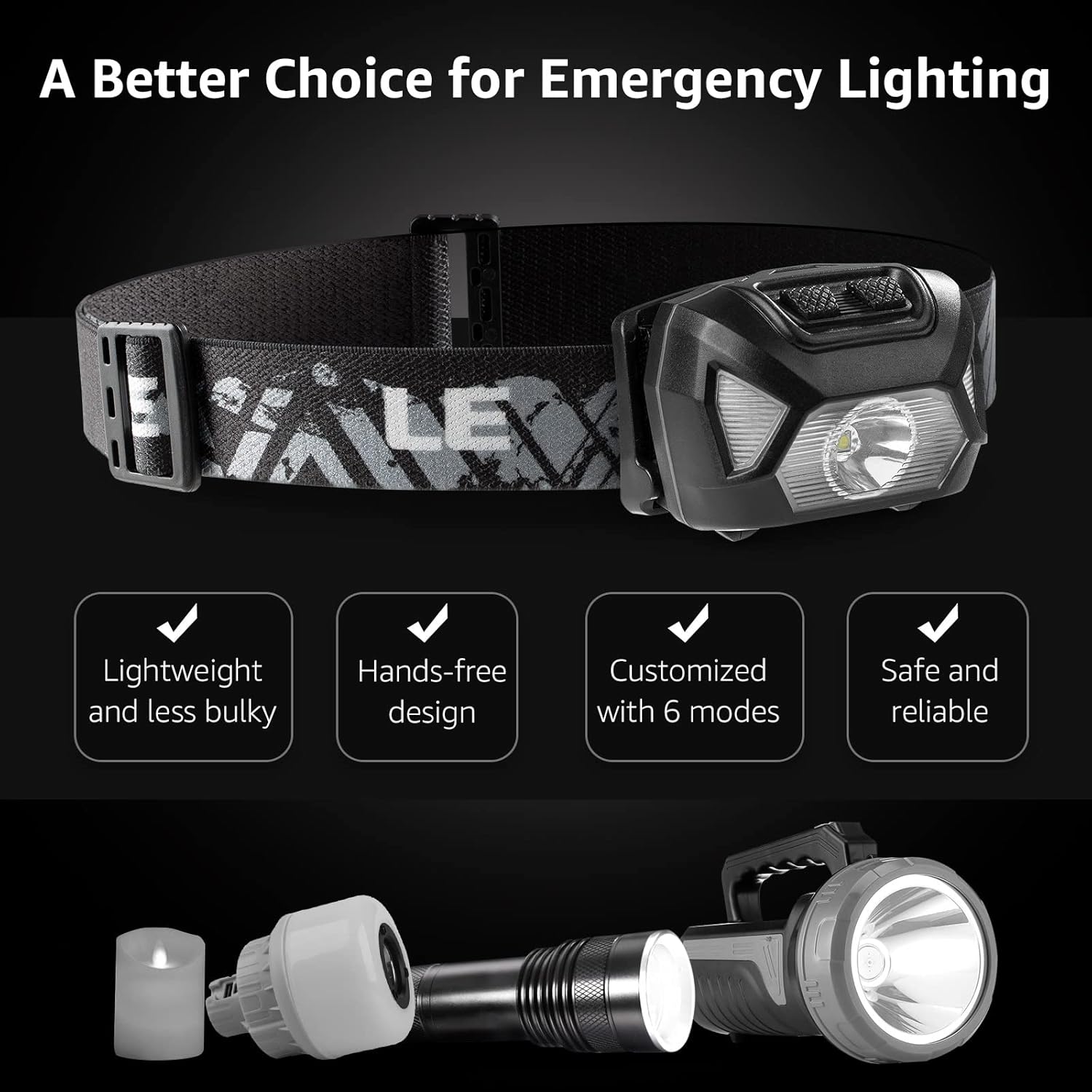 • 6 Lighting Modes: There are 6 lighting modes to s6 Lighting Modes - There are 6 lighting modes to suit your different needs, including spot light (high/low), flood light (high/low), and red light (stay on/flash). You can also choose a combination of spot light and flood light.